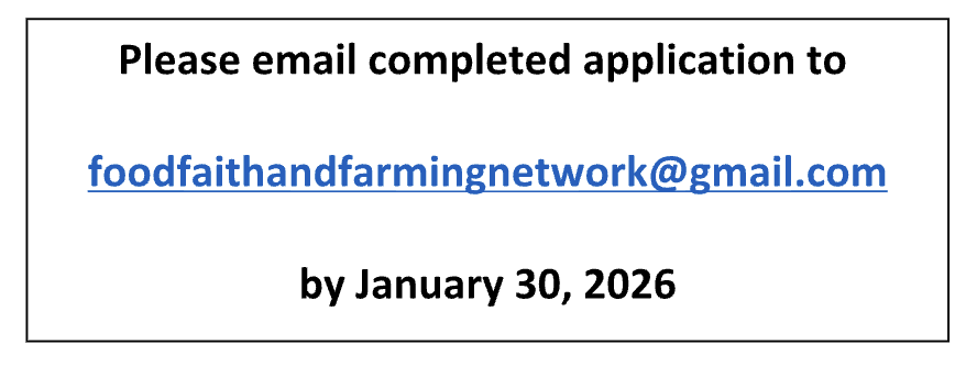 Questions may be directed to: foodfaithandfarmingnetwork@gmail.com